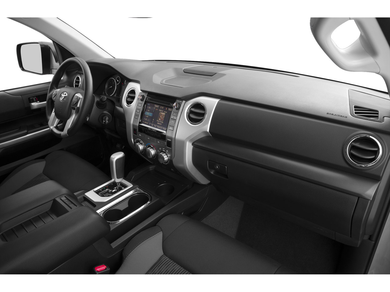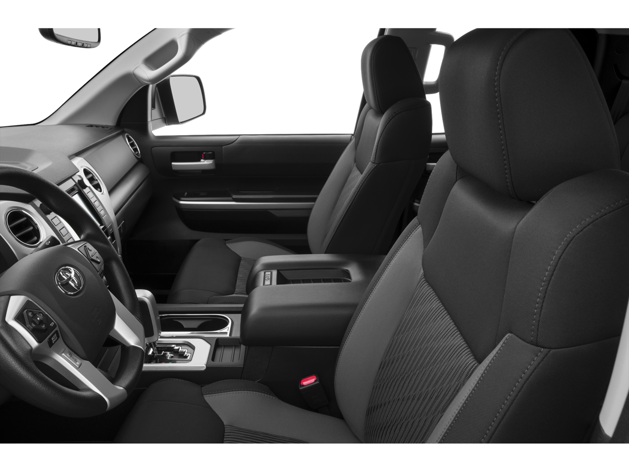 SR5 Upgrade Package: Replaces Front Bench Seats with Front Bucket Seats with Power Driver Seat with Power Lumbar Support, Floor Mounted Urethane Shift Lever and Knob, Tilt and Telescoping Urethane Steering Wheel, 3 Front Cup Holders, Front Console Box, Auto-dimming Rearview Mirror with Compass and HomeLink Universal Transceiver, and Anti-theft System with Alarm. ($0)