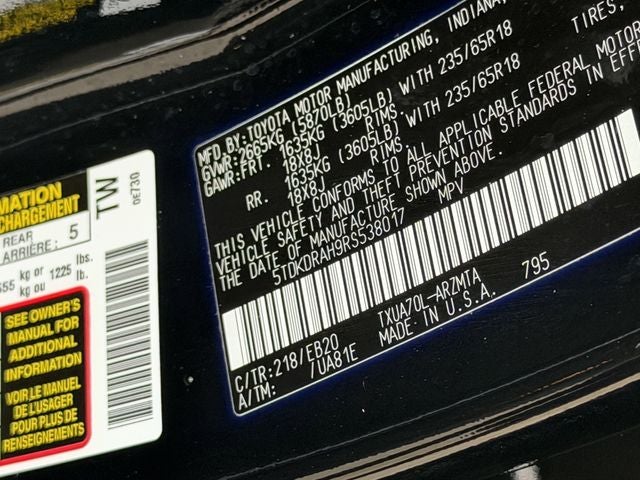- Vehicle Name: Toyota Highlander