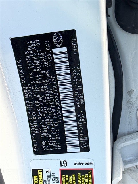 - Vehicle Name: Toyota Camry